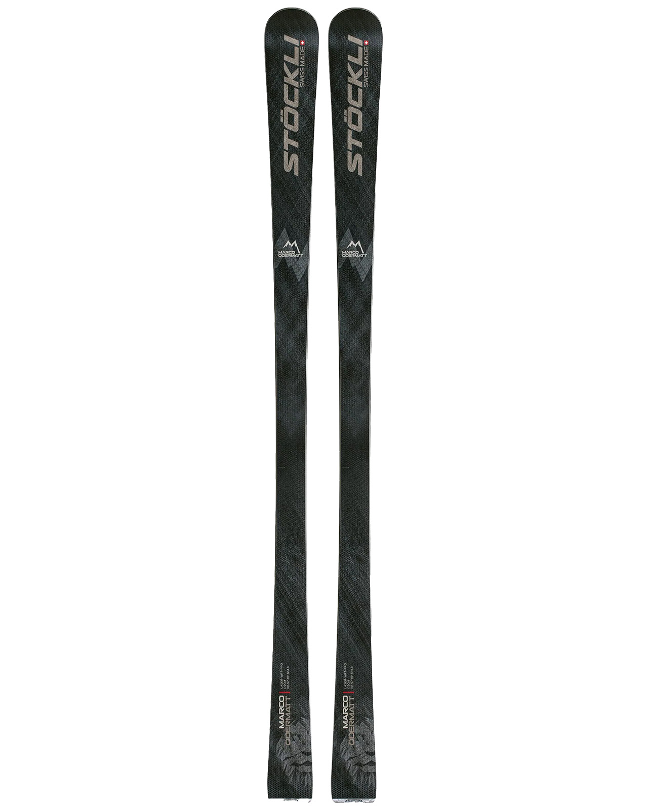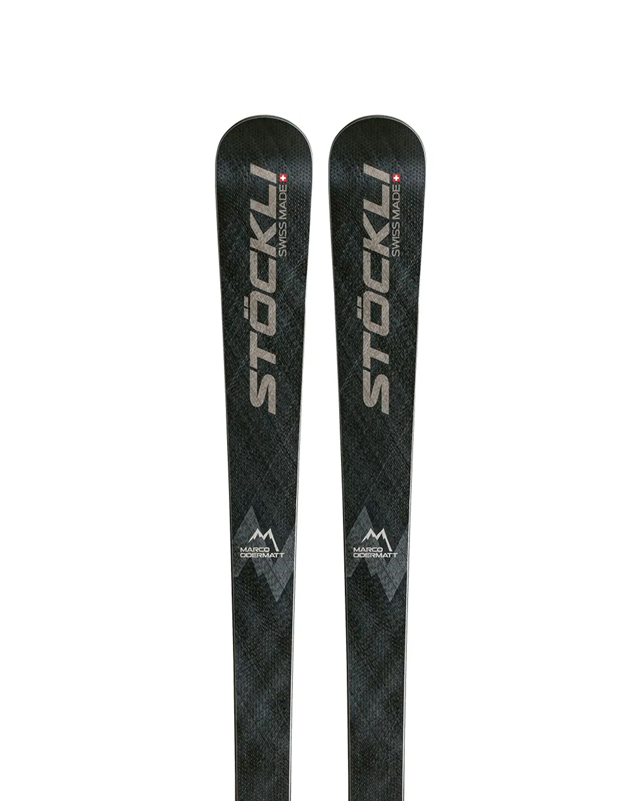 Ce modèle de ski arbore un design sobre et élégant, avec une finition texturée en noir et gris, sublimée par des détails subtils qui rappellent l’esprit de compétition. En édition limitée, il porte la mention “Marco Odermatt”, une touche exclusive qui séduira les fans du skieur suisse. Le logo Stöckli, affiché en grandes lettres accompagné du symbole “Swiss Made”, met en avant la qualité et le savoir-faire suisse qui caractérisent ces skis d’exception.