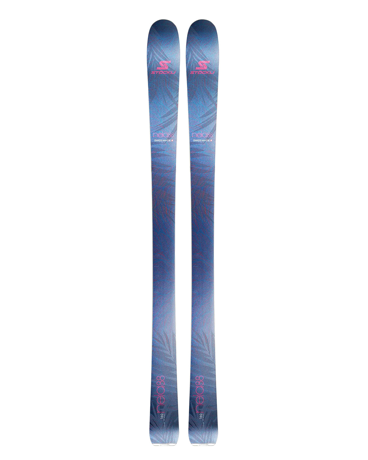 Le Nela 88 affiche un design captivant et féminin, avec un dégradé de bleu et des motifs subtils rappelant des feuilles, sublimé par des détails rose vif. Ce look raffiné allie modernité et sophistication, pour un ski aussi performant que beau.